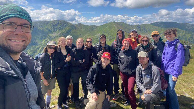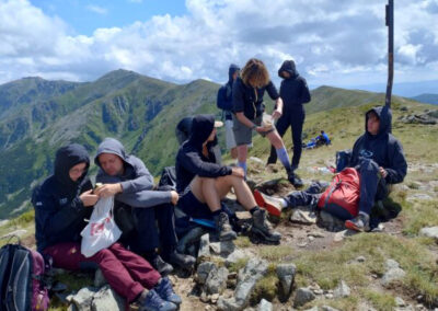 Der erste Tag in der Niederen Tatra begann um 9 Uhr mit einer Wanderung auf den Berg Jasná Chopok. 15 Teilnehmende erklommen die 1100 Höhenmeter über Stock, Stein und Wasser. Belohnt wurden wir mit einer wunderschönen Aussicht auf die Berge. Ohne Verletzungen kamen wir 8 Stunden später wieder auf dem Campingplatz an, wo uns ein leckeres Abendbrot erwartete, das uns die Nicht-Wanderfreudigen gezaubert hatten.