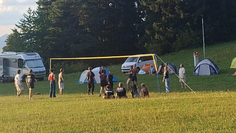 Jetzt lassen wir den Abend noch mit einer Runde Volleyball und einer warmen Dusche ausklingen.