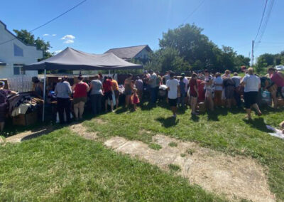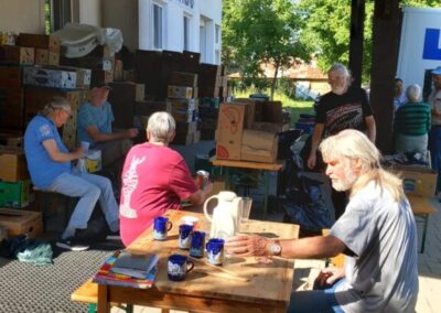Nach dem Frühstück wurde der Basar an der Sozialstation aufgebaut und wie jedes Jahr sehr gut von den Leuten angenommen. Insgesamt haben wir in den letzten Tagen über 650 Kartons verteilt und weitere 460 stehen für unsere zweite Gruppe, die Ende August kommt nun bereit.