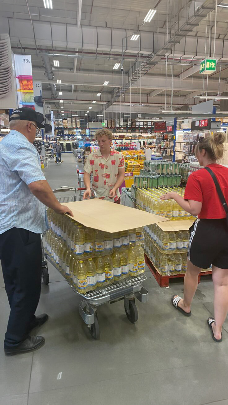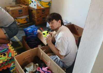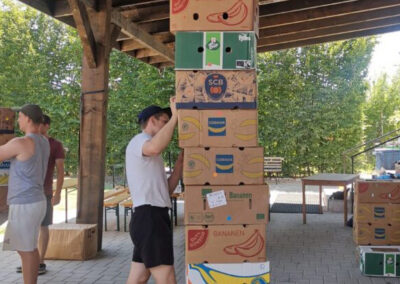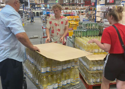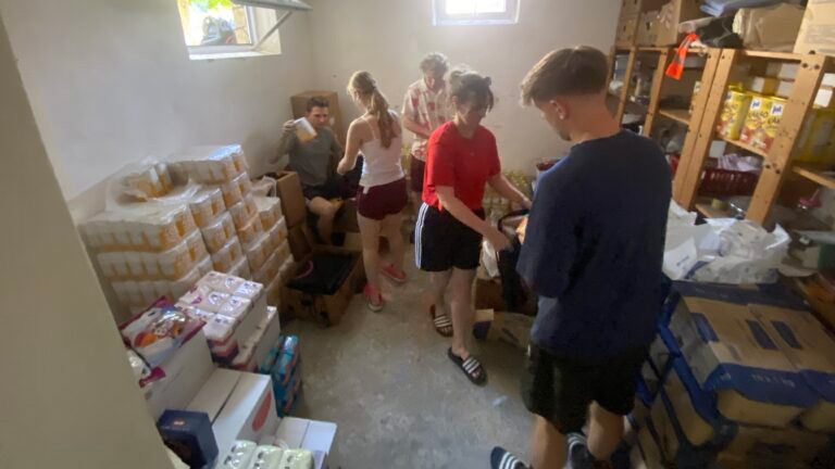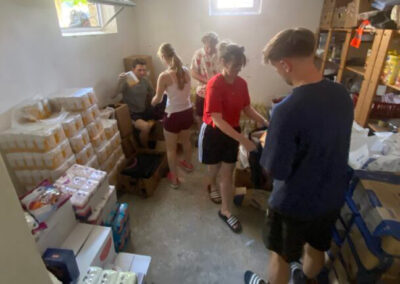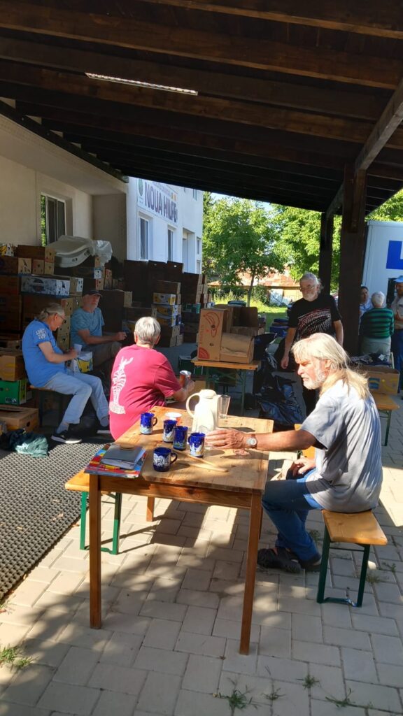 Nach der offiziellen Begrüßungsrunde ging es ans sortieren und einpacken. Eine Gruppe kümmerte sich um den Einkauf für die nächsten Tage. Eine weitere Gruppe füllte die Vorräte mit Mehl, Zucker, Öl und Nudeln auf, sodass wir in den nächsten Tagen 300 Familien ein Essenspaket überreichen können. Für morgen wurden 200 Kartons verpackt und einige der Brunnen kartiert und überprüft in Poiana sowie Buda, welche 2024 von den Spendengeldern gebohrt wurden.