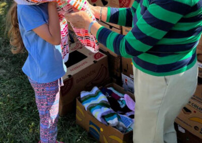 Auf unserem Basar konnten sich die Leute aus dem Ort Kleidung, Spielsachen und Brot, sowie Beutel mit Lebensmitteln mitnehmen. Alle waren super entspannt und höflich. Vor allem die Kinder freuten sich über die Spielsachen, ein Mädchen besonders über ihr neues Fernglas. Trotzdem waren wir gegen Ende sehr geschafft, weil es sehr warm und sonnig war.