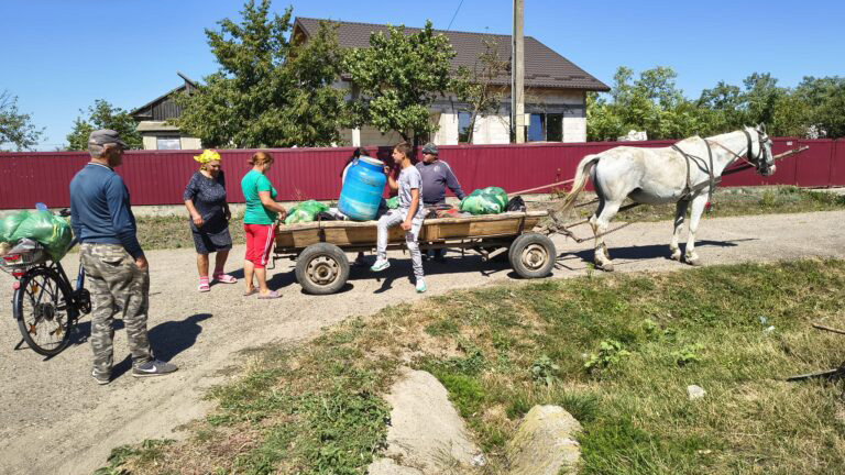 Da wir noch so viele Kartons mit Sachen für Frauen hatten, ging die nächste Station nach Baranca Christianesti. Dort kamen Menschen aus dem gesamten Umkreis, manche mit Pferdewagen und anderen kreativen Transportmitteln und freuten sich über Sachspenden, Brot und andere Lebensmittel.