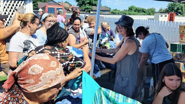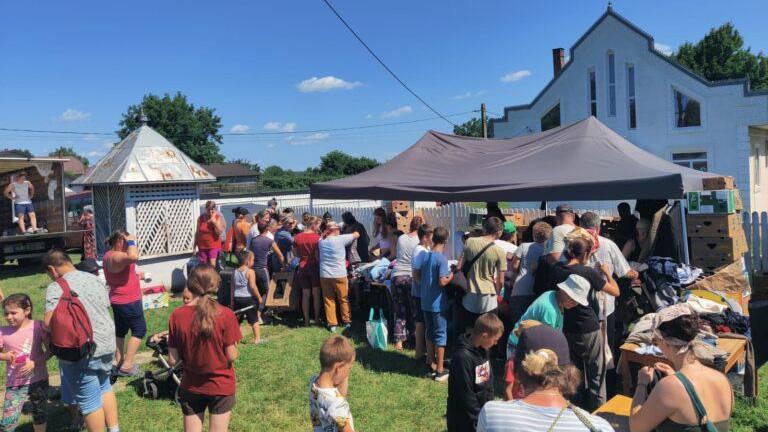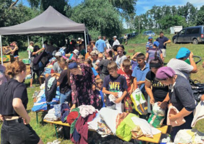 Heute konnten wir bei vielen Menschen aus dem Ort Poiana fröhliche Gesichter sehen, denn wir bauten einen Basar auf, der sehr gern angenommen wurde. Es war für uns keine Zeit, Luft zu holen. Karton um Karton wurde geleert und immer wieder nachgefüllt.