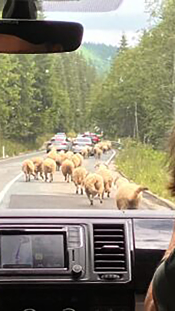Die vier Autos schlängelten sich über die Serpentinen. Einige bezwungen dabei mehr als andere, ein Auto ganze 73! Andere wurden von einer Schafherde begleitet. Letzten Endes sind alle Autos gut auf der Sozialstation angekommen.