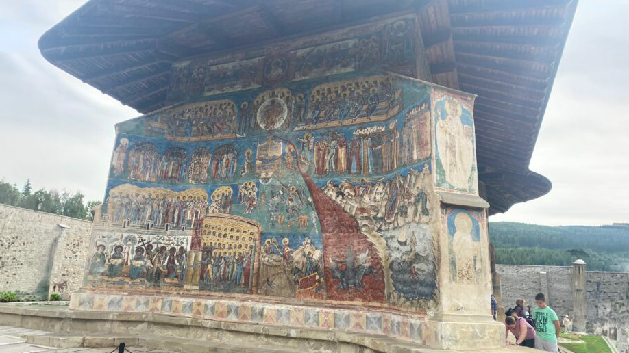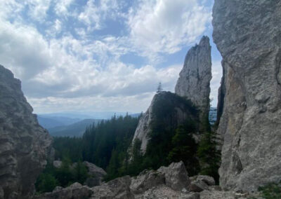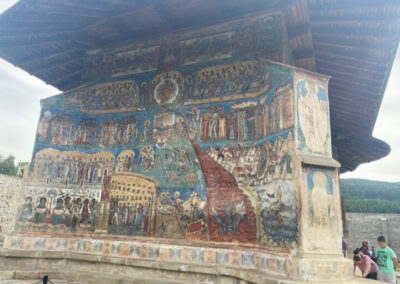 Der andere Gruppenteil hat sich auf den Weg zum Kloster Voronec begeben und dabei einen Teil einer orthodoxen Messe erlebt, um schließlich über eine sehr abenteuerliche sowie serpentinenreiche Anfahrt auf das Plateau des Raraufelsen mit unserer Ingeborg zu fahren. Wundervolle Aussichten und kletterreiche Wege haben wir erlebt, bis die ersten Unwetter aufzogen und ein Gruppenteil noch über das Kloster Sucievita und die Schwarzkeramikläden den Rückweg angetreten haben.