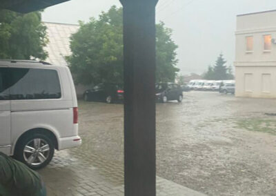 Eigentlich wollten wir am Montag nochmal in ein Dorf, um Brot- und Kleiderspenden zu verteilen. Durch die nächtlichen sehr starken Unwetter mussten wir dies ausfallen lassen, da die Dörfer abseits der Hauptstraßen mit den Fahrzeugen schwer zu passieren sind und wir kurz vor der Rückfahrt kein weiteres Risiko eingehen wollten. Außerdem hat Radu sich mit seinem Bienen-LKW am Vortag im Schlamm festgefahren und ein Reifen ging dabei kaputt.