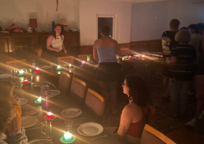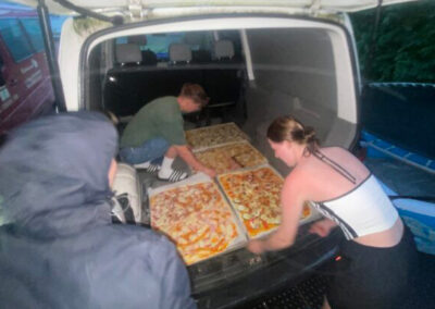 Zurück auf der Sozialstation haben wir den LKW entladen. Abends wurden wir sehr lecker vom heutigen Kochteam bekocht und während des Abendessens von einem Unwetter überrascht, zum Glück haben wir unser Vordach.